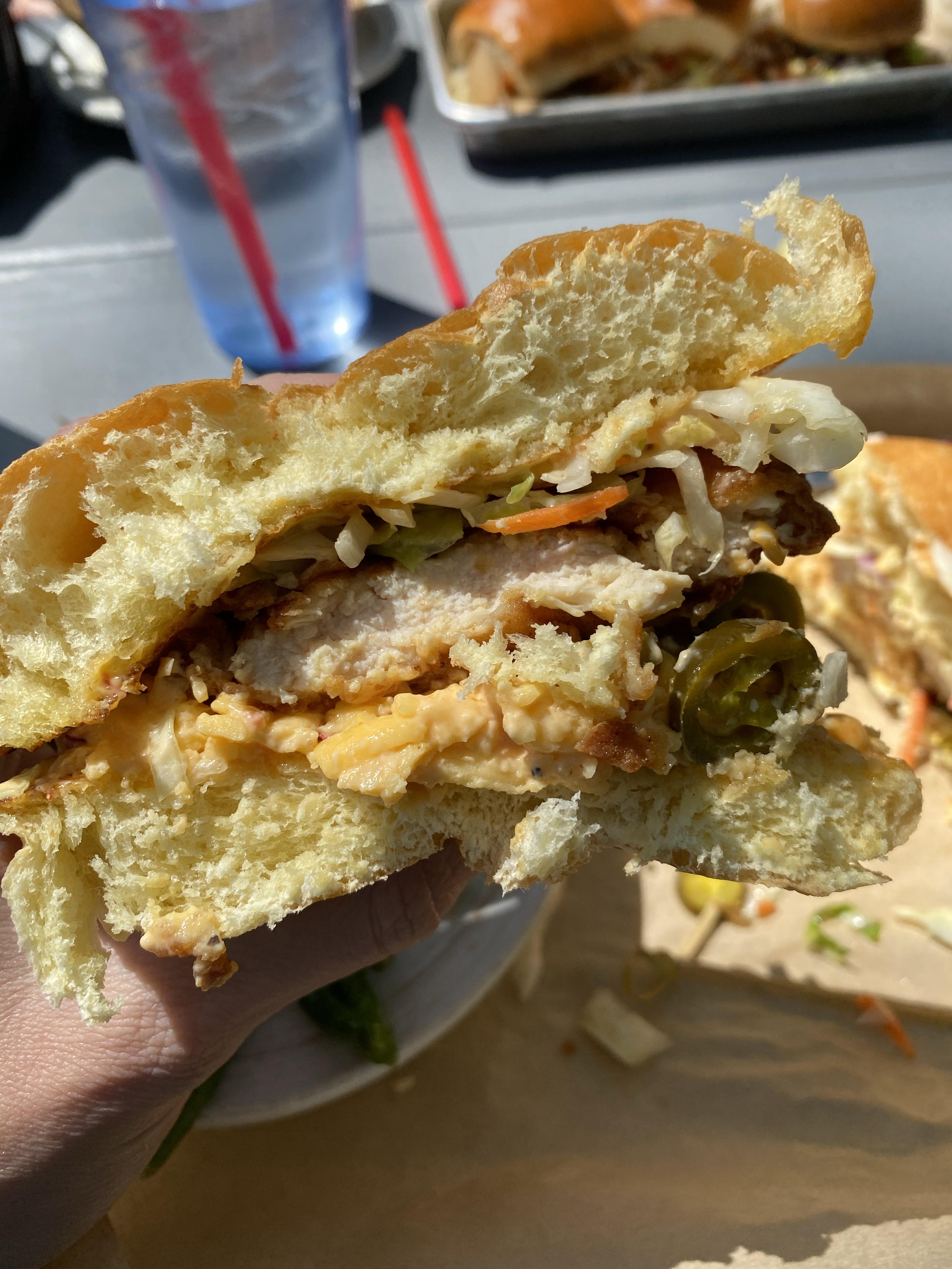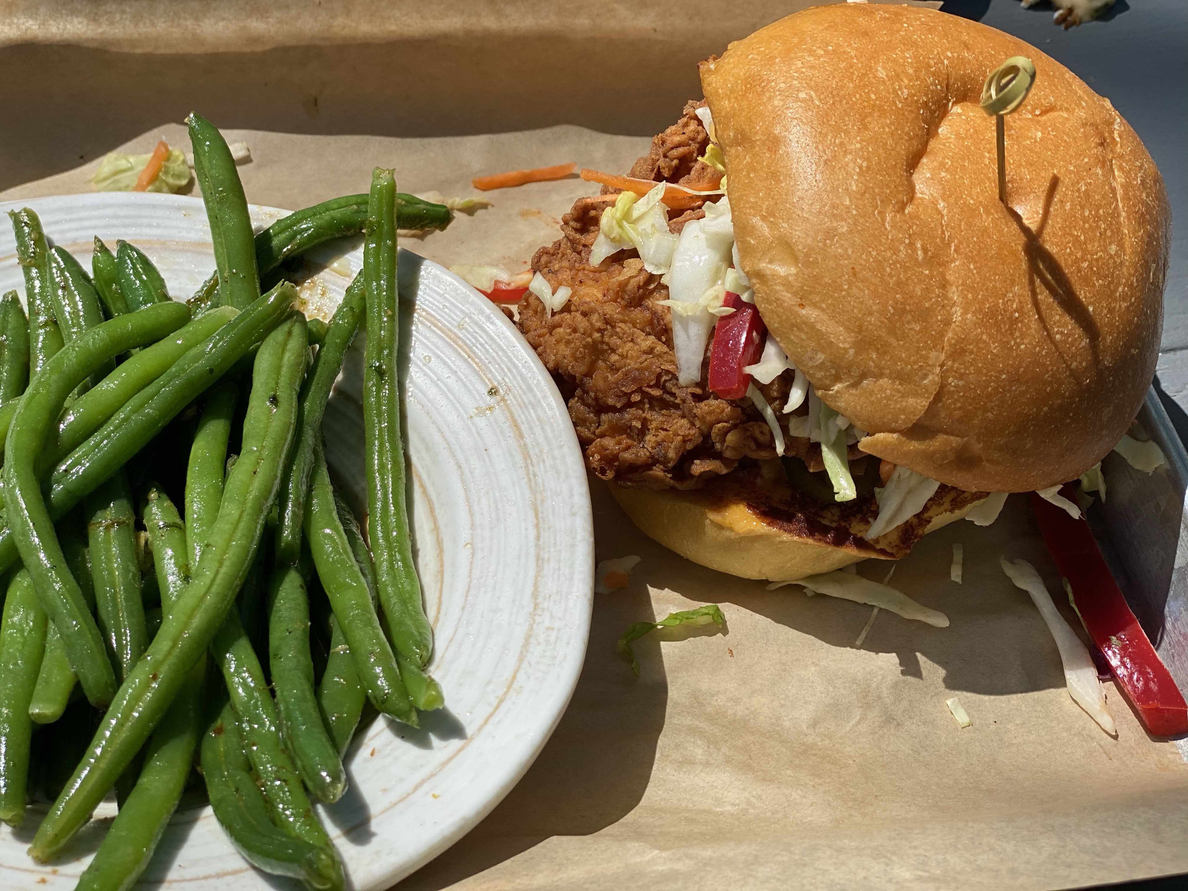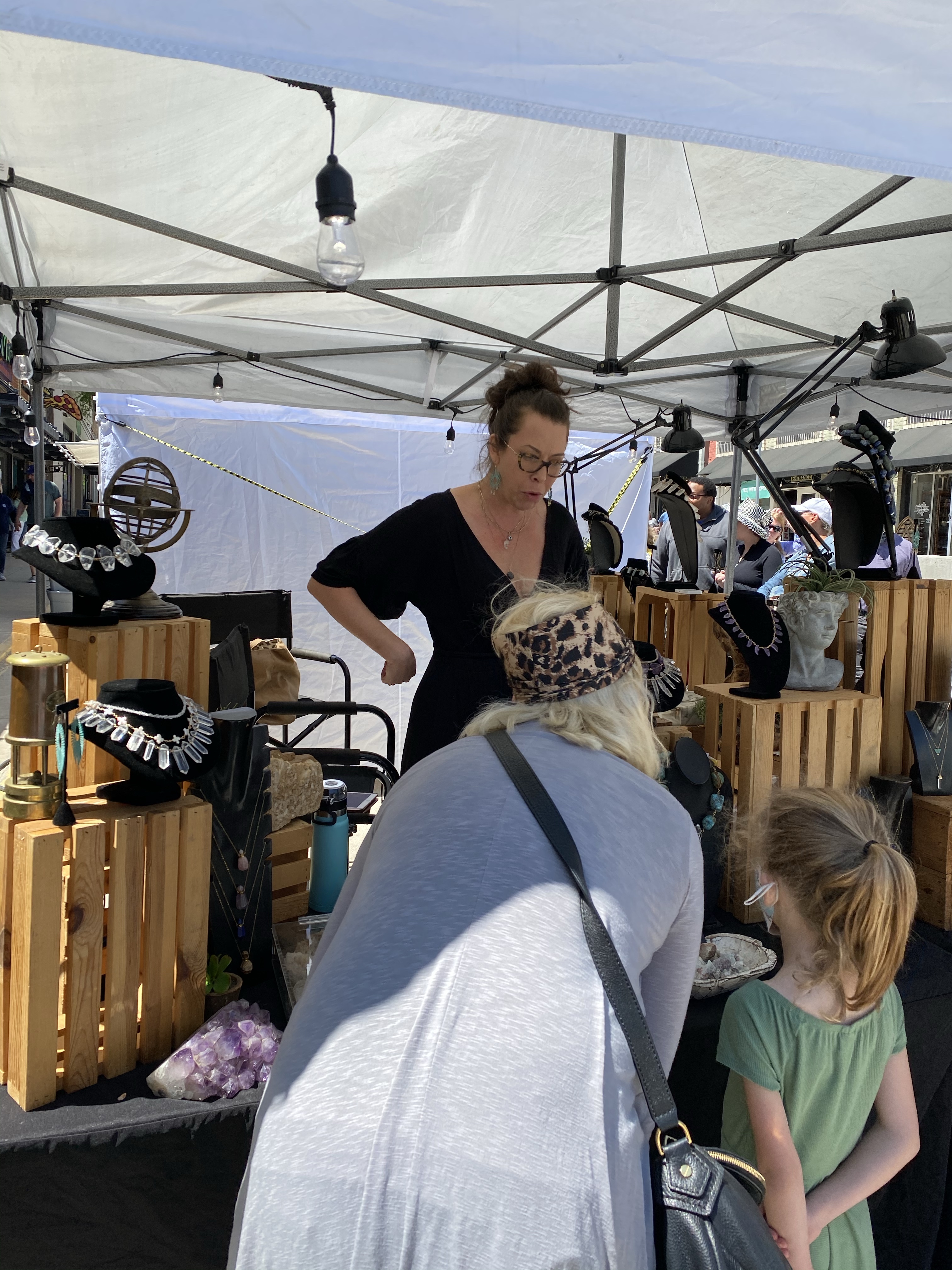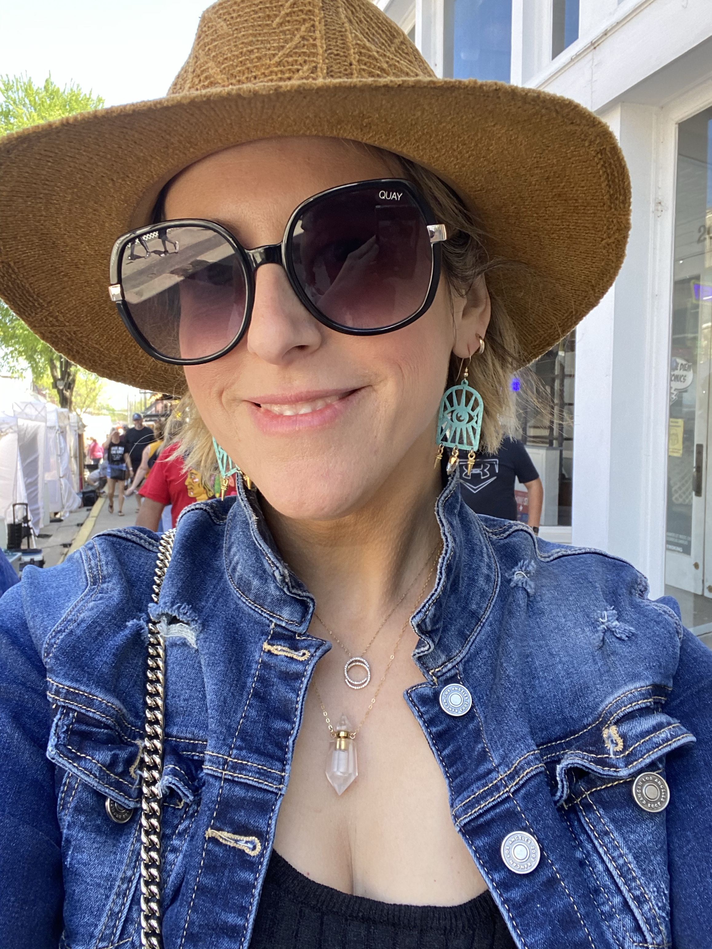 I recently came across a feed on social media that showed some local artists decided to “Yarn Bomb” trees and benches and other things in downtown McKinney. I told the hubby we def needed to go check it out! As soon as we got to downtown McKinney, we realized that they were having a fair with local artists in stalls…even better!! First, we met my sis for brunch and hit up the The Yard. We started with the waffles fries smothered in queso, pulled pork, cojita cheese and jalapeños. Sooooo dayum good! The Bloody Mary’s were strong and spicy 🌶 and the day was beautiful on their big patio. For entrees, I had the crispy chicken sammie with pimento cheese and peppers and a side of the garlic green beans and the hubs got the nachos (they were HUGE) with queso and pulled pork. Next, I ordered the Watermelonade consisting of Grey Goose Watermelon Basil Vodka, Lime, St-Germain, Watermelon, Mint Simple Syrup. Very refreshing and STRONG 💪 . Everything was delish and we were stuffed! We decided to walk around, let our tummies rest, and check out the art. So many talented folks from word working, jewelry, photography, painting and various other crafts. We also stumbled into a cool antique shop and picked up a nifty vintage bourbon 🥃 decanter. We always stop at the Spice & Tea Merchants to grab their Olive Texas Ranch roasted garlic olive oil. So yummy for cooking vegetable and even eggs! Our last stop happened to be at a jewelry stall where we met Heather from Modern Artifacts and her gorgeous pieces! She explained to us about her jewelry making journey and how she learned metal work in high school and combined her archeology roots to inspire her work. I got a gorgeous mini vessel necklace and turquoise evil eye earrings. Our day in dt McKinney quickly came to a close and on our way home, we picked the kiddos up the requested Chick-fil-A late lunch. Now off to nap the afternoon away before tonight. Ciao!