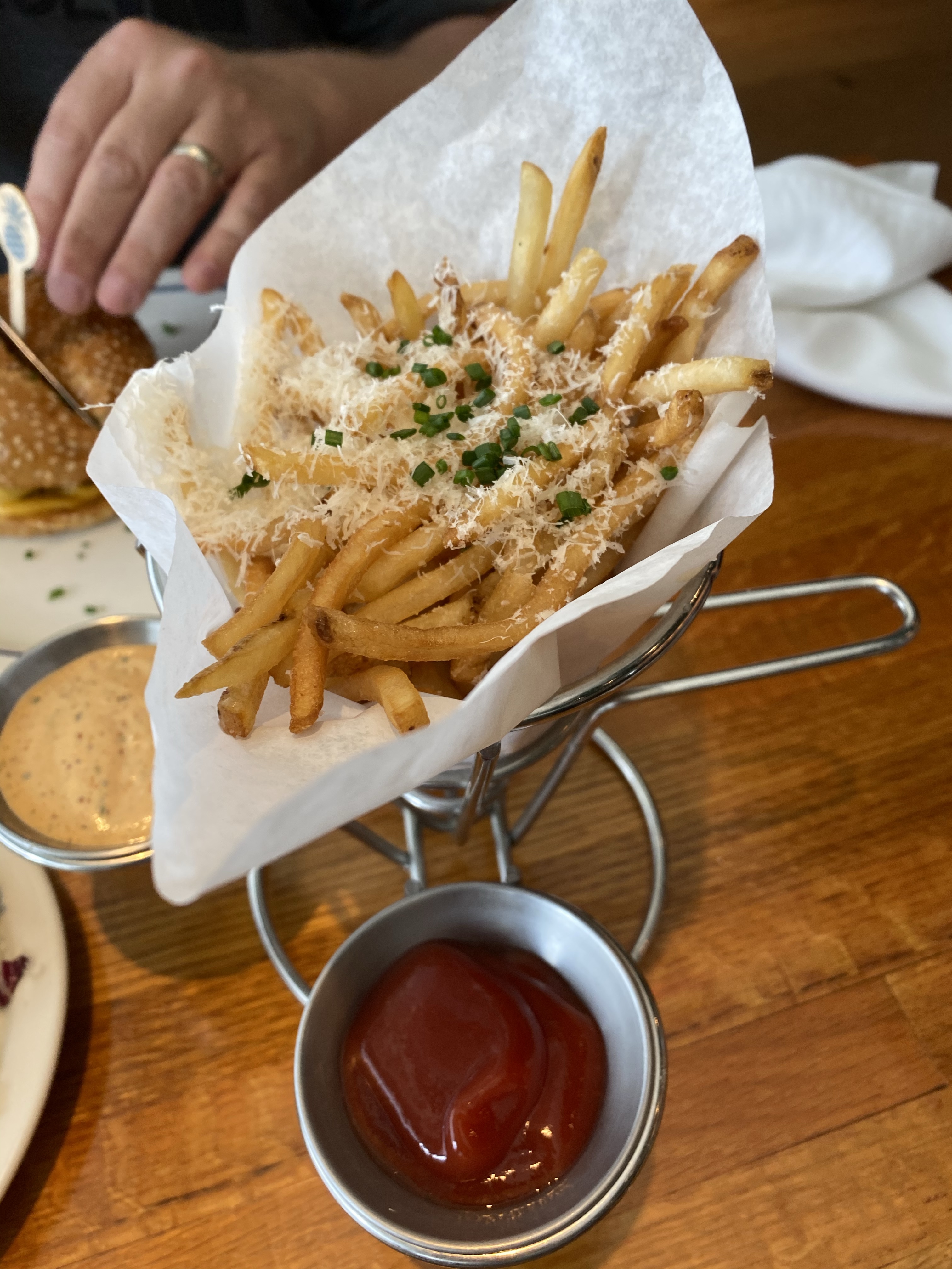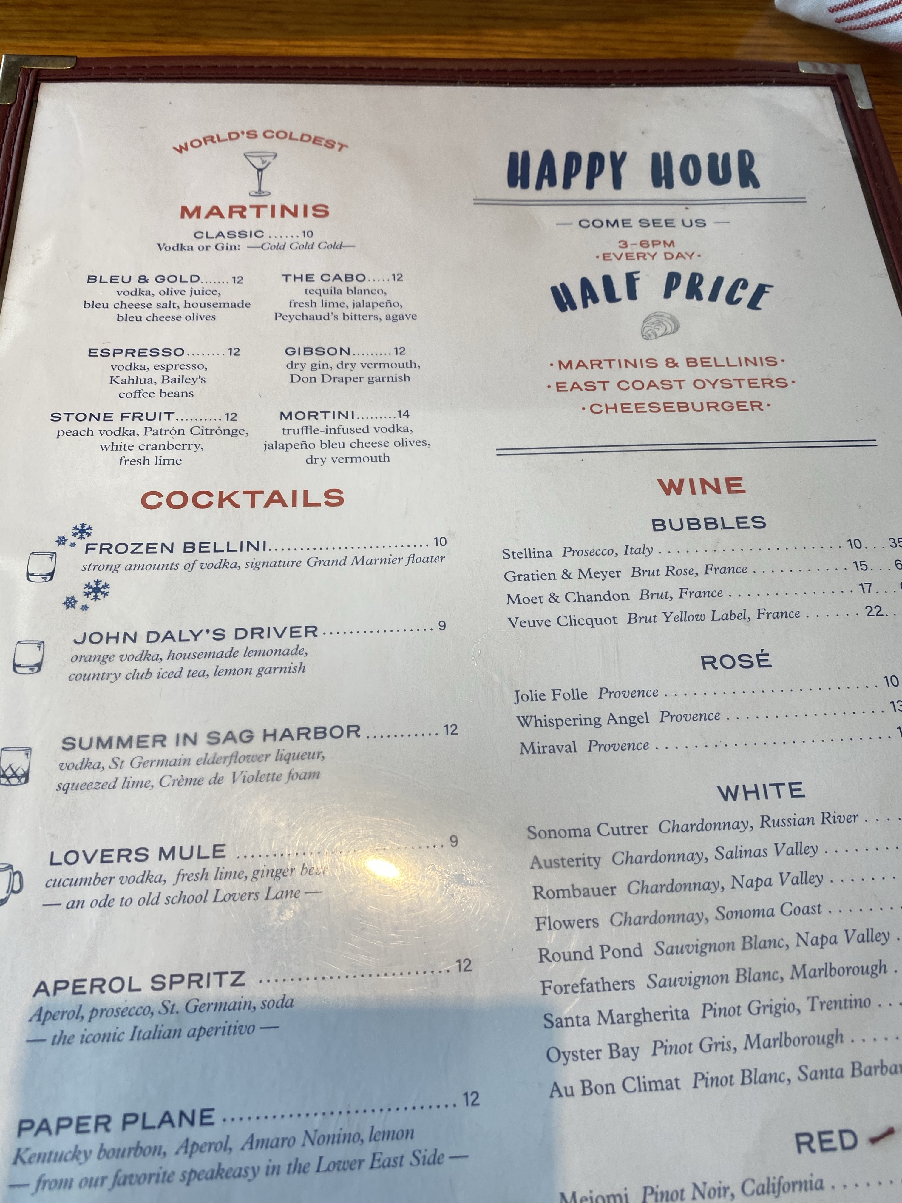 The truffle fries were crispy and came with three dipping sauces (I LOVE to dip) and the Jackโs salad was arugula and radicchio which was tasty and lightly dressed. The drinks are strong and well balanced but since itโs busy I suggest ordering your second right away!! The burgers ๐ , oysters ๐ฆช, martinis ๐ธ and bellinis are all 1/2 priced during HH!!! ๐๐ป You should def go check them out ANY day of the week!