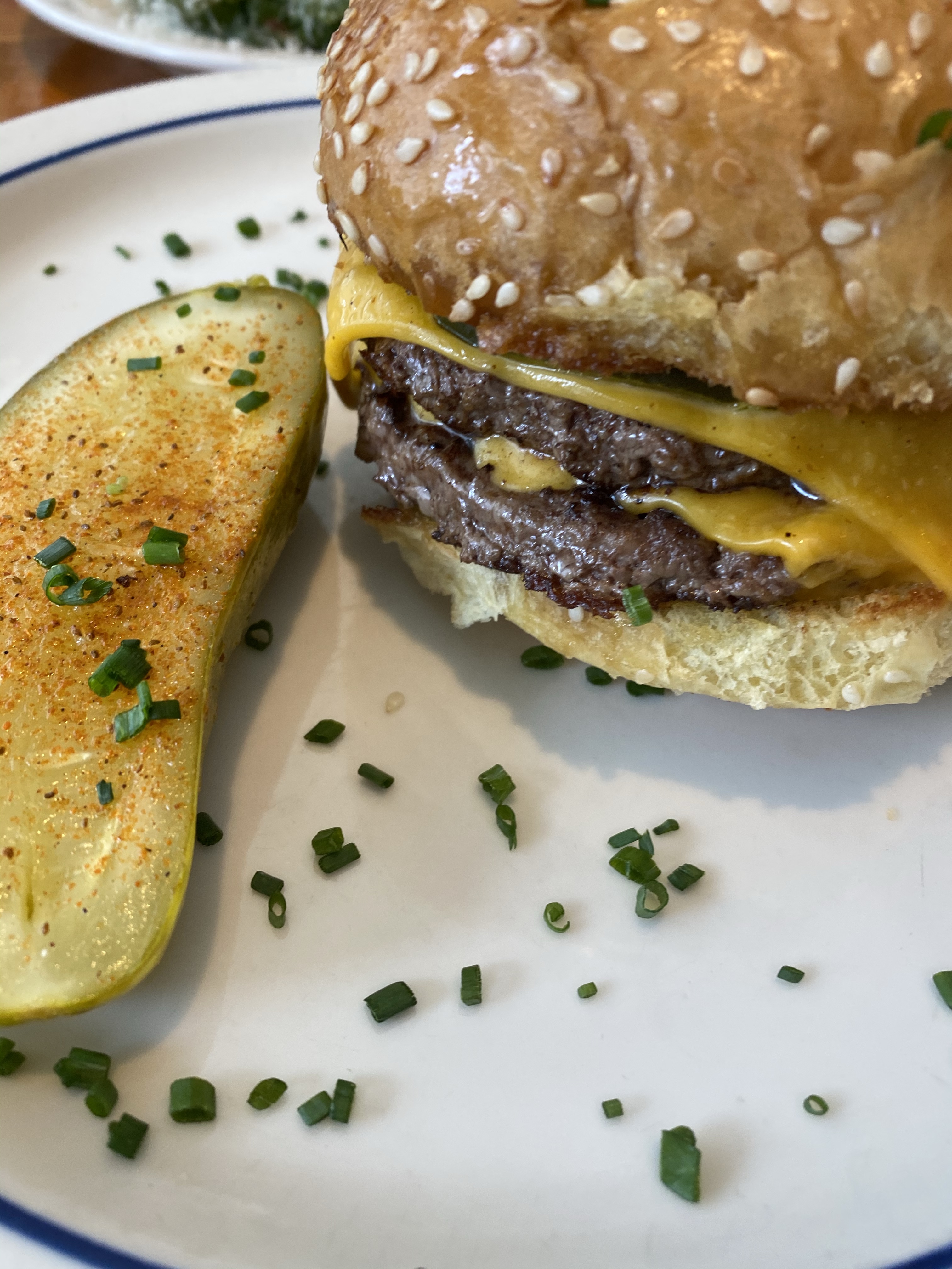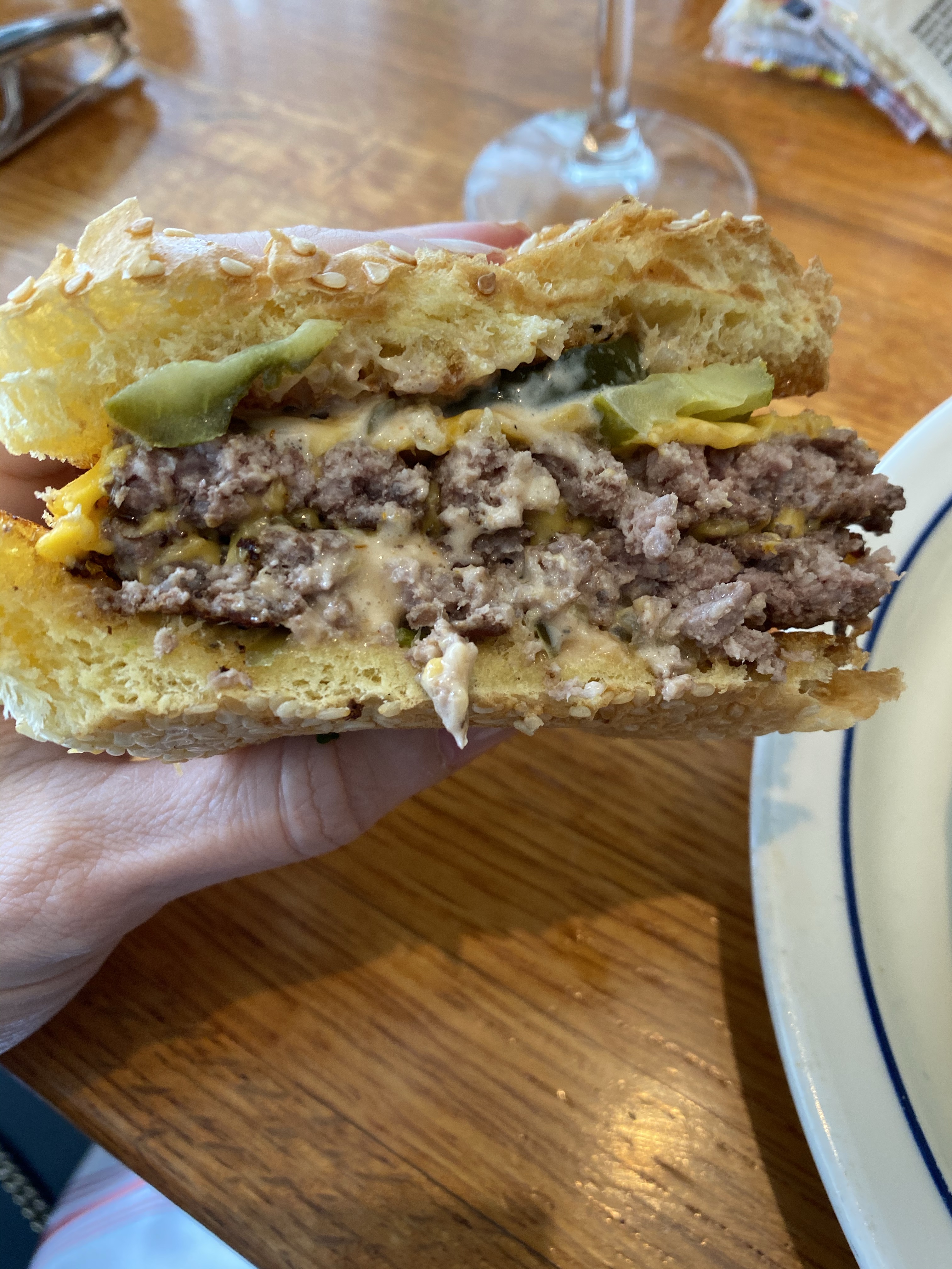 When you have the literal best burger ๐ of your entire life at the Hudson House Addison during their 1/2 price HH from 3-6 pm EVERY day of the week EVEN on weekends!! โค๏ธ The burger has thin patties, American cheese, pickles, minced onion, Hudson sauce and is cooked to your satisfaction.